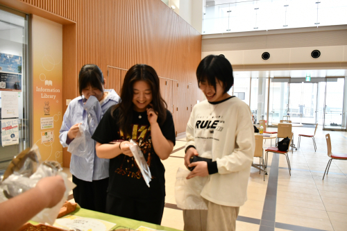 当日は、焼き菓子やクッキーなどを中心に販売され、多くの学生が行列をつくるほどの盛況ぶりでした。販売には、本学のメンタルウェルネスサークルの学生もお手伝いとして参加し、利用者の皆さまと学生との温かな交流の場となっています。