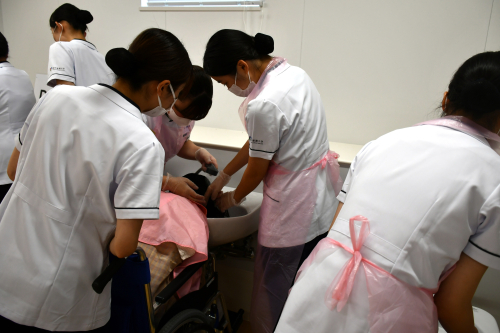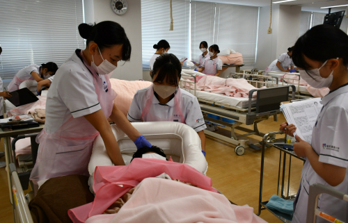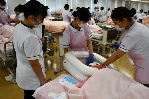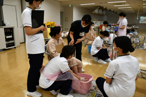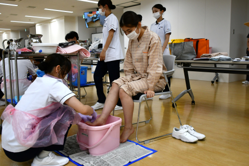 1年生 日常生活援助論演習 イベント 2025.10.17 1年生日常生活援助論演習の様子です。学生同士で洗髪や足浴を行い、実践を通して技術を確認し合いながら、改善点を指摘し合いました。 少しずつ経験を重ねながら、看護師への第一歩を踏み出しています。