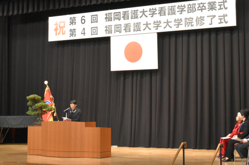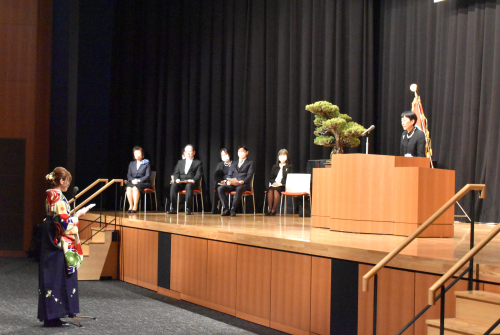 多くの保護者の皆さまに見守られながら式を執り行うことができ、学生代表の答辞では、お世話になった保護者や先生方への感謝の言葉が述べられ、感動的な卒業式となりました。